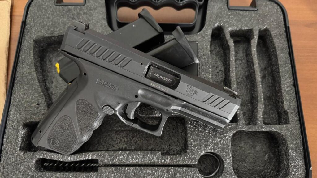 Durante o cumprimento de mandado de busca no Bairro Paineiras, em Catalão, os policiais apreenderam uma pistola calibre 9 milímetros, devidamente registrada, além de dezenas de munições. O material recolhido será submetido a exames periciais para auxiliar no andamento do inquérito policial.