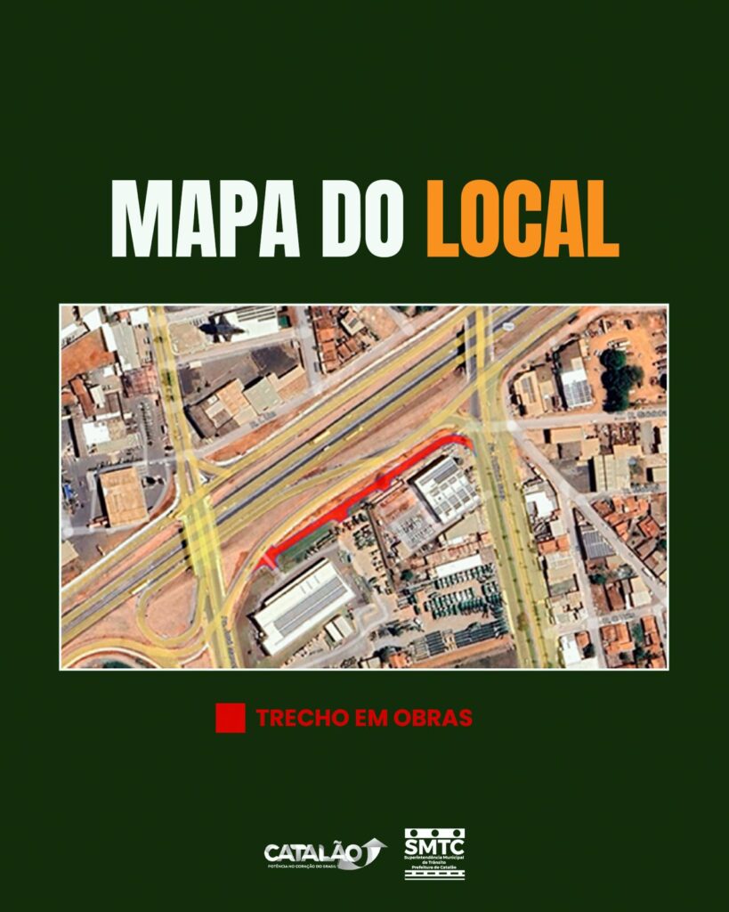 A Prefeitura de Catalão informa que, a partir do próximo dia 1º de maio, o trecho localizado em frente à Coringa Fiat será totalmente interditado para a realização de obras de infraestrutura viária. A previsão é que a interdição dure até o dia 1º de junho, período em que o local permanecerá completamente intransitável para veículos.