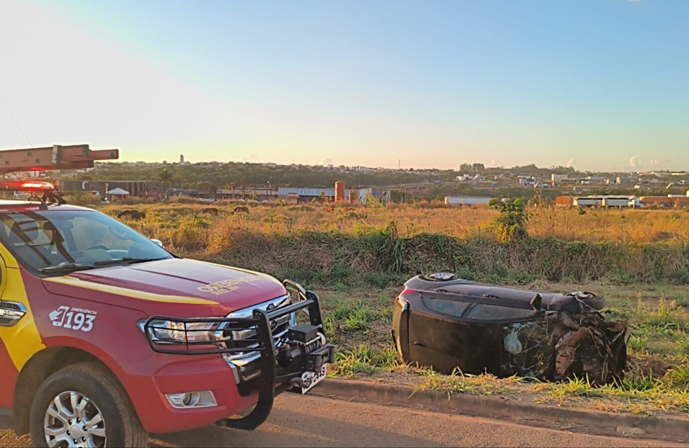 Um acidente registrado no fim da tarde desta quinta-feira (25) mobilizou o Corpo de Bombeiros de Catalão. O caso ocorreu por volta das 17h40, na BR-050, próximo ao Posto Comboio, quando um carro saiu da pista e acabou tombando.